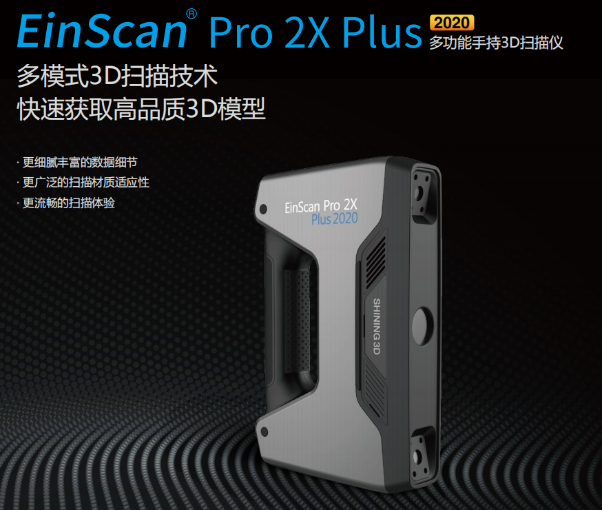 EinScan Pro 2X/EinScan Pro 2X Plus 2020手持3D掃描儀。在延續上一代機型的優良性能基礎上,進一步提升了產品綜合性能,多功能的設備屬性,可滿足多尺寸、多細節、高精度的3D建模用戶需求;兼顧數據細節和掃描效率,同時擴展了被掃描材質的范圍,更大程度拓展了3D掃描的應用場景,加上獨特的多功能掃描模式,可滿足用戶高精度、豐富細節、多種尺寸的3D建模需求,是工程師和設計師的得力助手。
